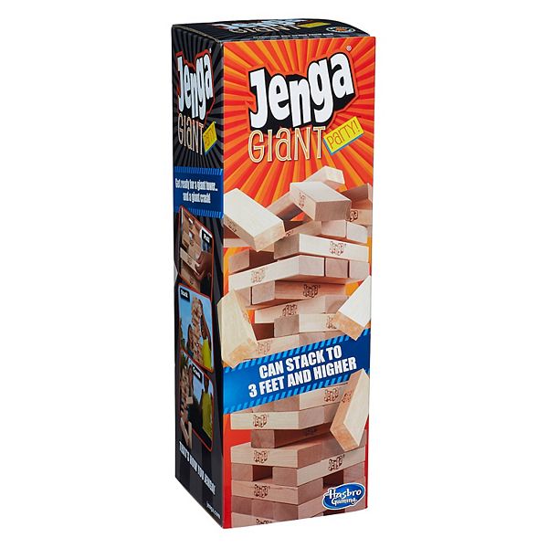 The goal is to. Giant Jenga Party Game by Hasbro Multicolor Its the Jenga game everyone loves but in a giant version. Includes 54 Jenga hardwood blocks stacking sleeve with instructions.